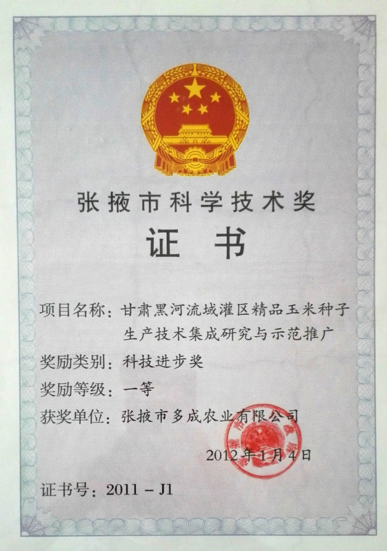 | 您現(xiàn)在的位置: 張掖市多成農(nóng)業(yè)有限公司 >> 資質(zhì)榮譽(yù) >> 公司榮譽(yù) >> 正文 |